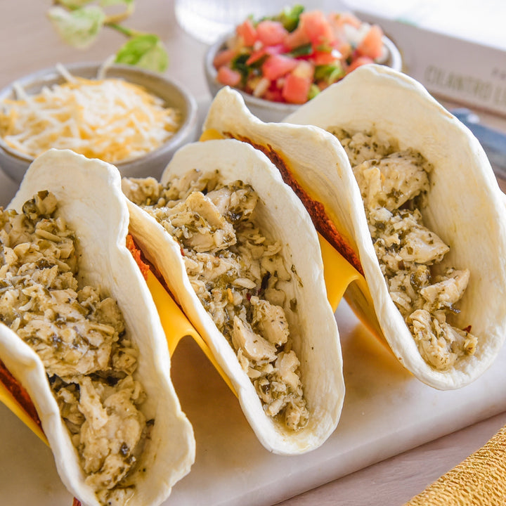 In an egglife wrap, add Kevin’s Cilantro Lime Chicken, avocado salsa, shredded cheese and pico de gallo! Repeat with remaining wraps and enjoy!