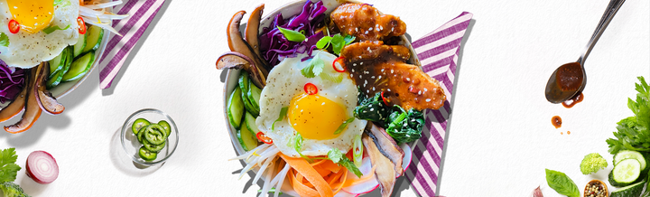 In a small, non-stick pan gently fry your eggs one at a time, sunny-side up. Top each bowl with a beautiful egg.