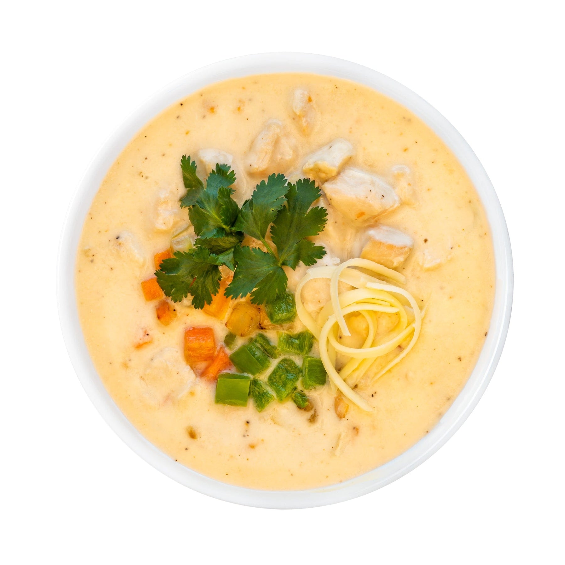 Hearty chunks of chicken breast and hatch chilies slowly simmered in a creamy white cheese soup.