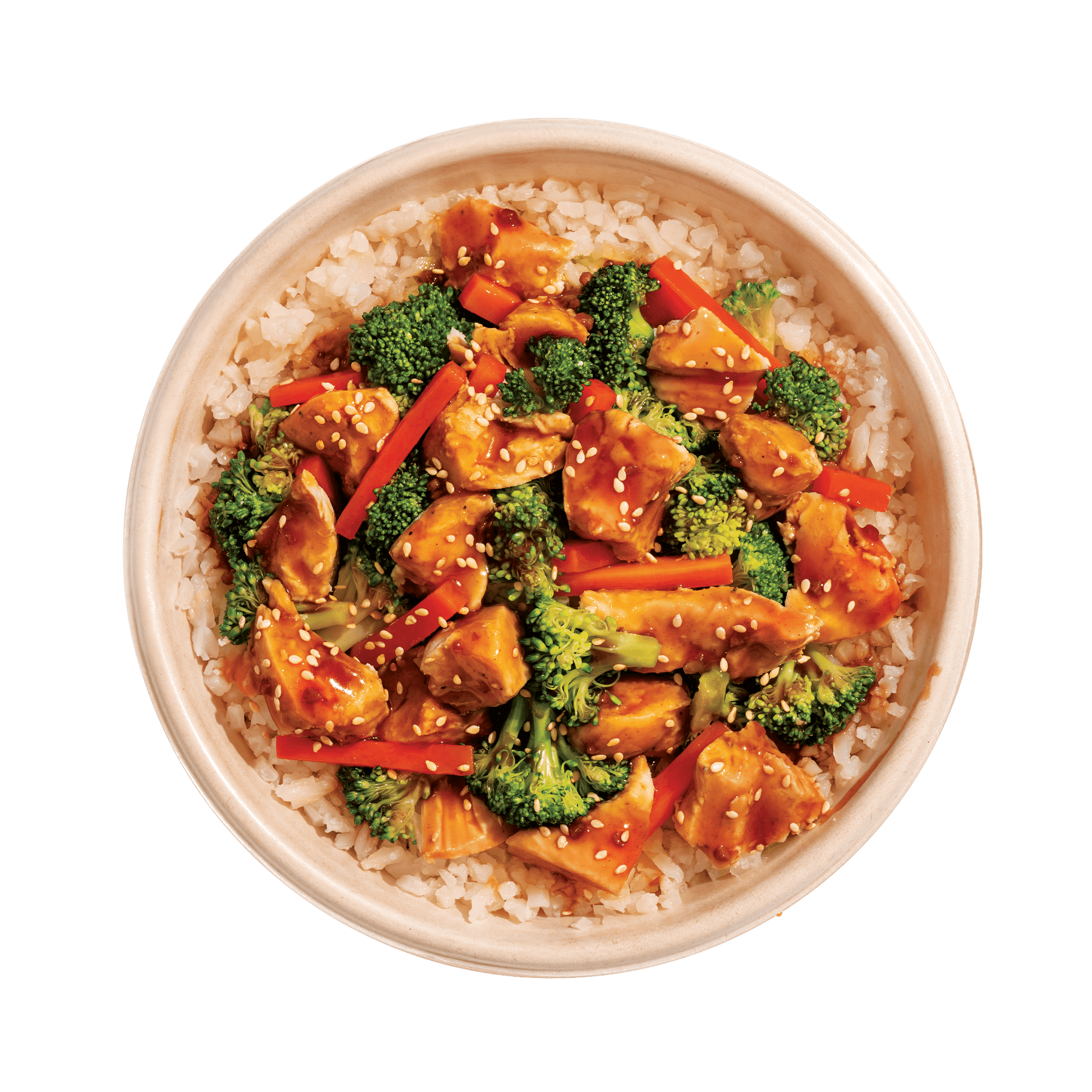 Chicken (Boneless Skinless Chicken Breast, Water, Vinegar, Yeast Extract, Sea Salt, Cultured Onion Juice, Xanthan Gum, Black Pepper, Citrus Extract), Cauliflower Rice (Cauliflower), Teriyaki Style Sauce (Water, Coconut Aminos [Coconut Nectar, Water, Sea Salt], Apple Cider Vinegar, Roasted Sesame Oil, Ginger Puree, Yeast Extract, Dehydrated Garlic, Tapioca Starch, Coconut Sugar, Shiitake Mushroom Powder, Xanthan Gum, Spices, Dehydrated Onion, Monk Fruit Extract), Broccoli, Carrots.